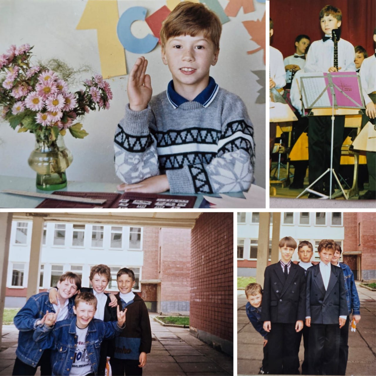 На фото с цветами - моё 1 сентября в 1 классе. Это начало 90-х: советскую школьную форму отменили, поэтому ходили в том, в чем могли себе позволить. Свитер, воротничок - вполне себе торжественно! Родители с заботой и любовью меня собирали в школу.